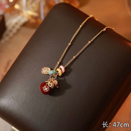 Popular Double-Sided Red Oil-Drip Shell Money Bag Heart Gourd Necklace Women's Light Luxury Clavicle Chain Niche New Year Necklace