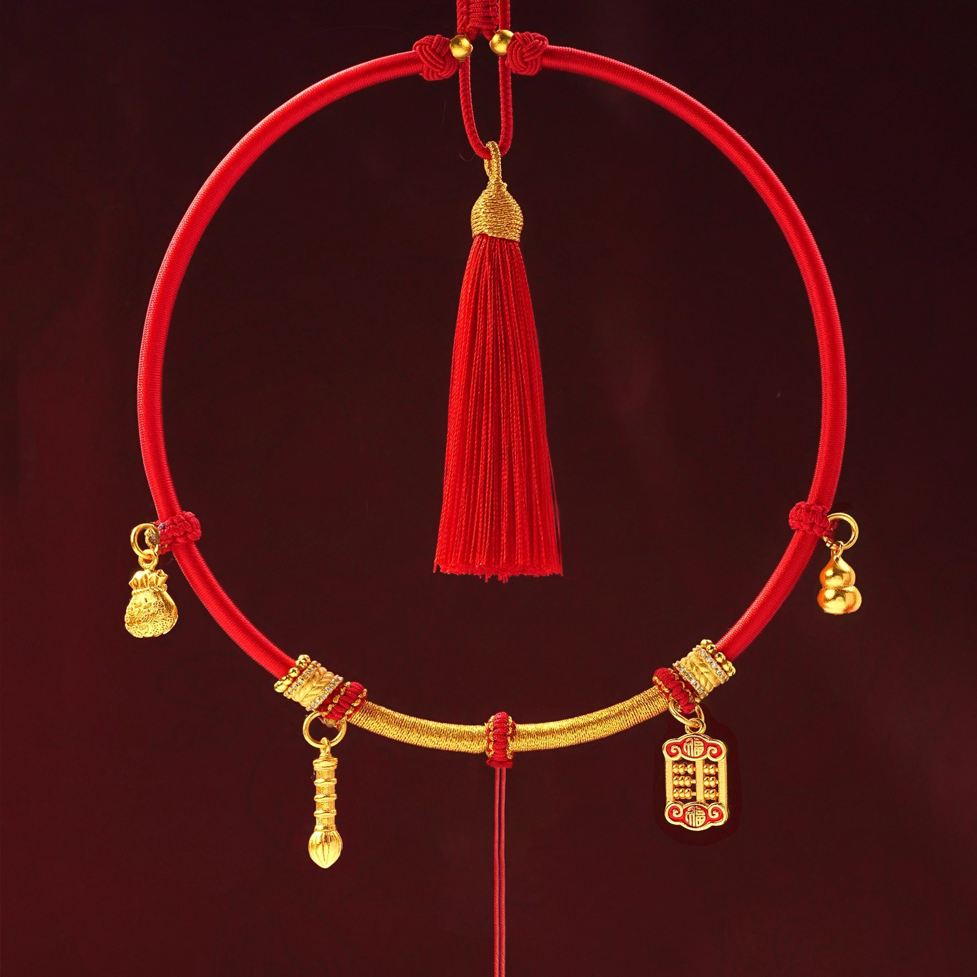 Gold Store Same Style Sand Gold Baby Lock Necklace Red Rope Blessing Character Longevity Safety Lock Necklace Children's Full Month Birthday Gift