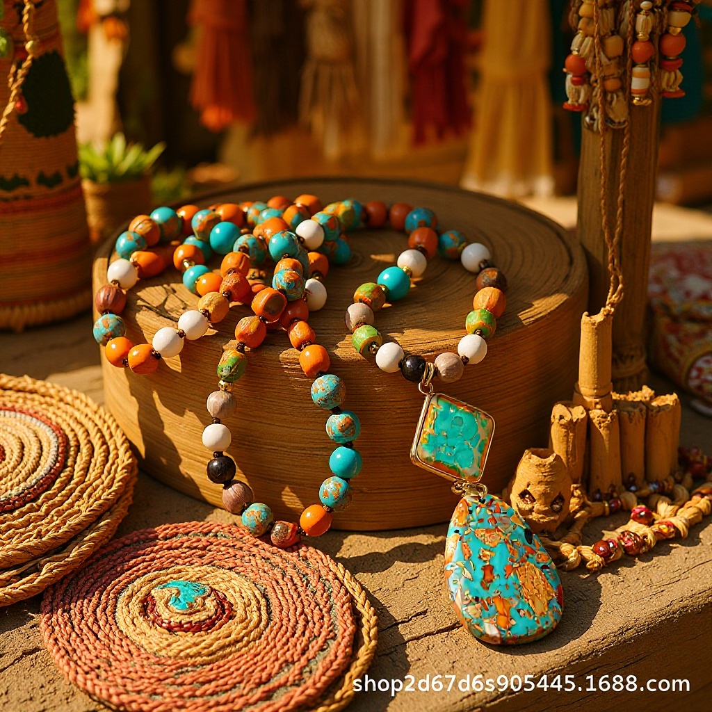 Necklace Middle Ancient European and American Designer Glass High-grade Temperament Pendant Qingdao Factory Niche Jewelry Women Wholesale
