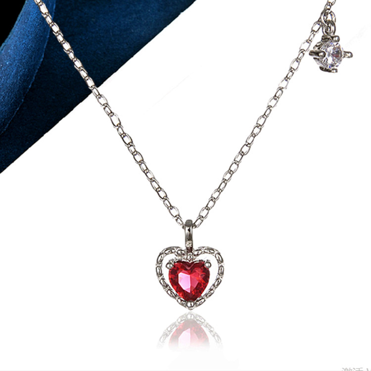 Korean Style Personalized Red Heart Clavicle Chain Women's Necklace Simple Elegant Diamond Zircon Heart-Shaped Pendant Necklace Jewelry