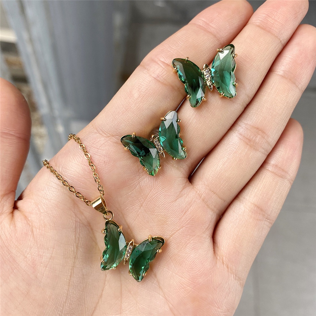 Europe and the United States explosions zircon butterfly crystal pendant necklace 13 color in stock direct selling real gold color plating