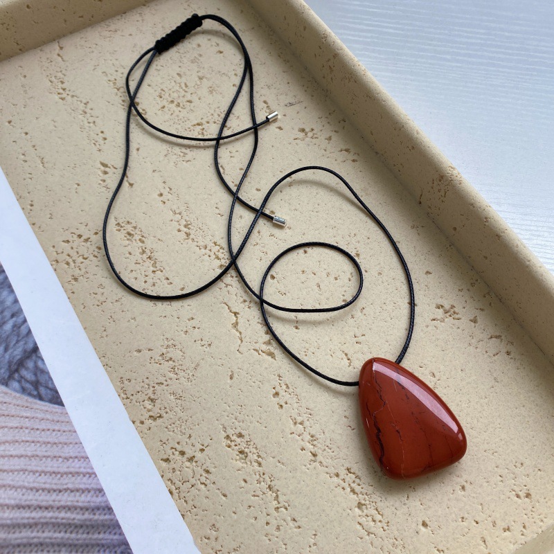 British Niche Design Natural Stone Necklace Light Luxury Simple Atmospheric Fashionable Adjustable Red Pendant Clavicle Chain for Women