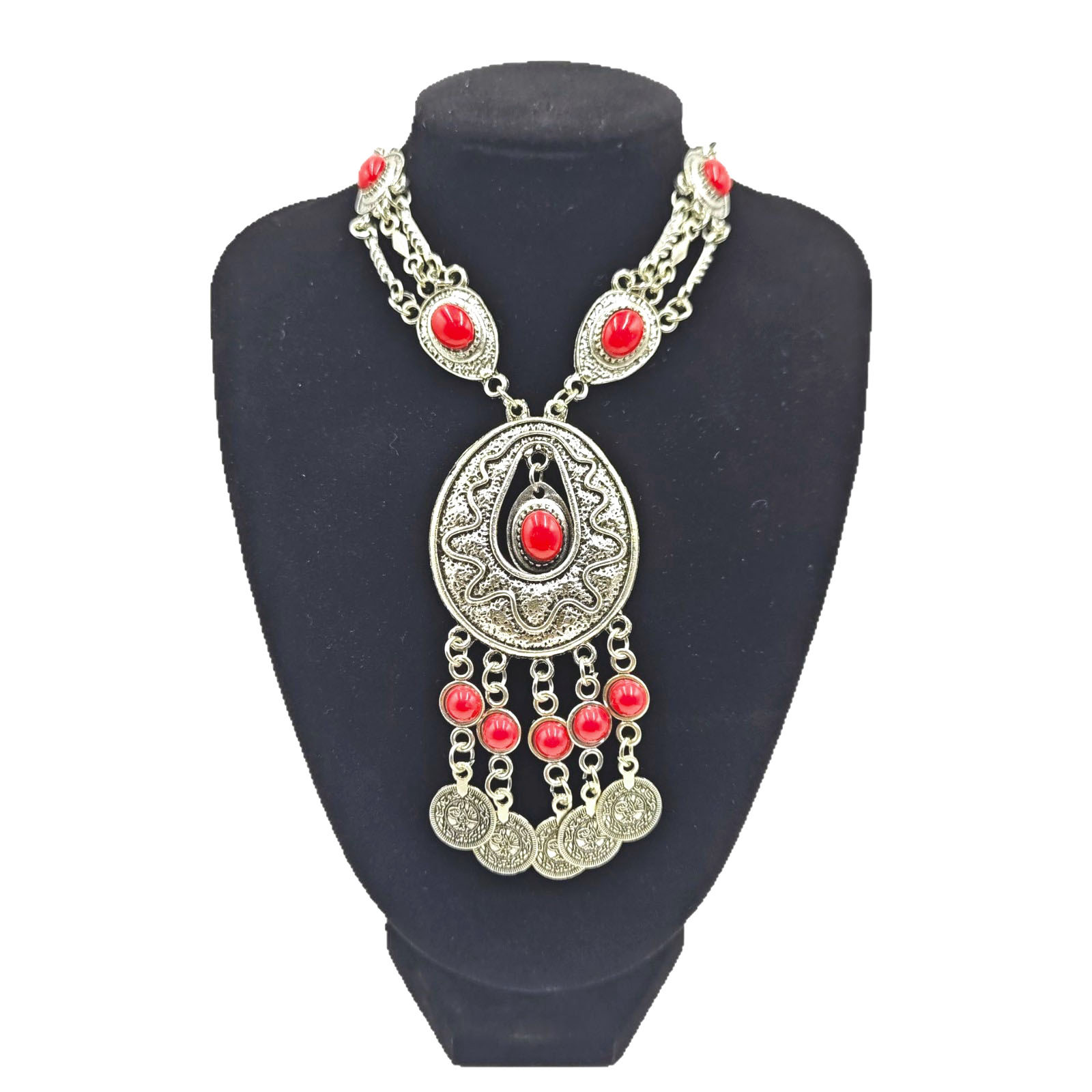 Kazakh Ethnic Style Necklace Scenic Imitation Turquoise Retro Bohemian Necklace Central Asia Travel Accessories