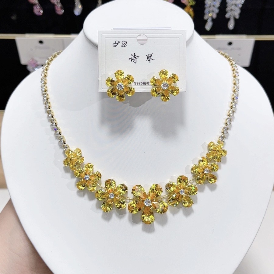 Cross-border jewelry wholesale color horse eye water drop necklace tassel earring clavicle chain bride suit necklace earring