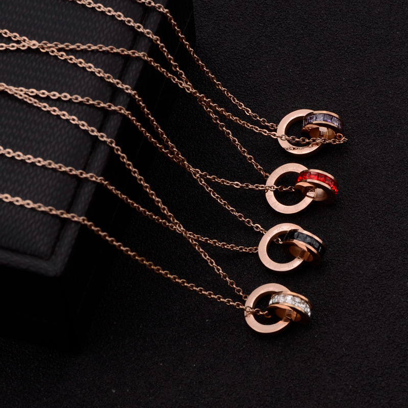 Non-Fading 18K Multicolor Zircon Roman Numeral Stainless Steel Necklace Versatile Titanium Steel Double Ring Gold-Plated Fashion Versatile