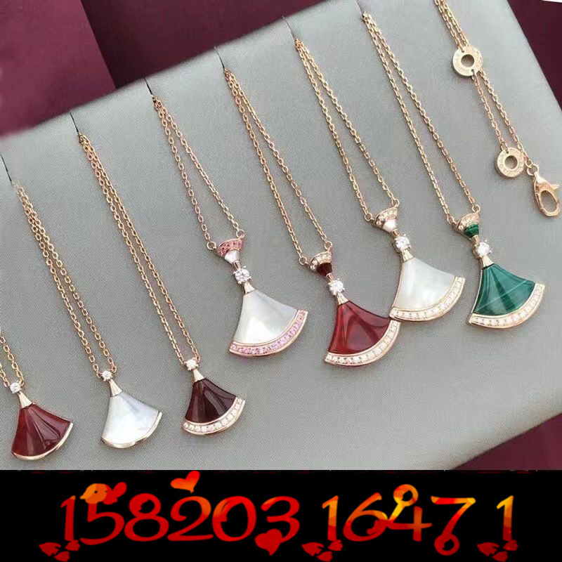Baojia High Version V Gold Small Skirt Necklace Women's White Mother-Of-Pearl Carnelian Fan-Shaped Plated 18K Rose Gold Clavicle Chain