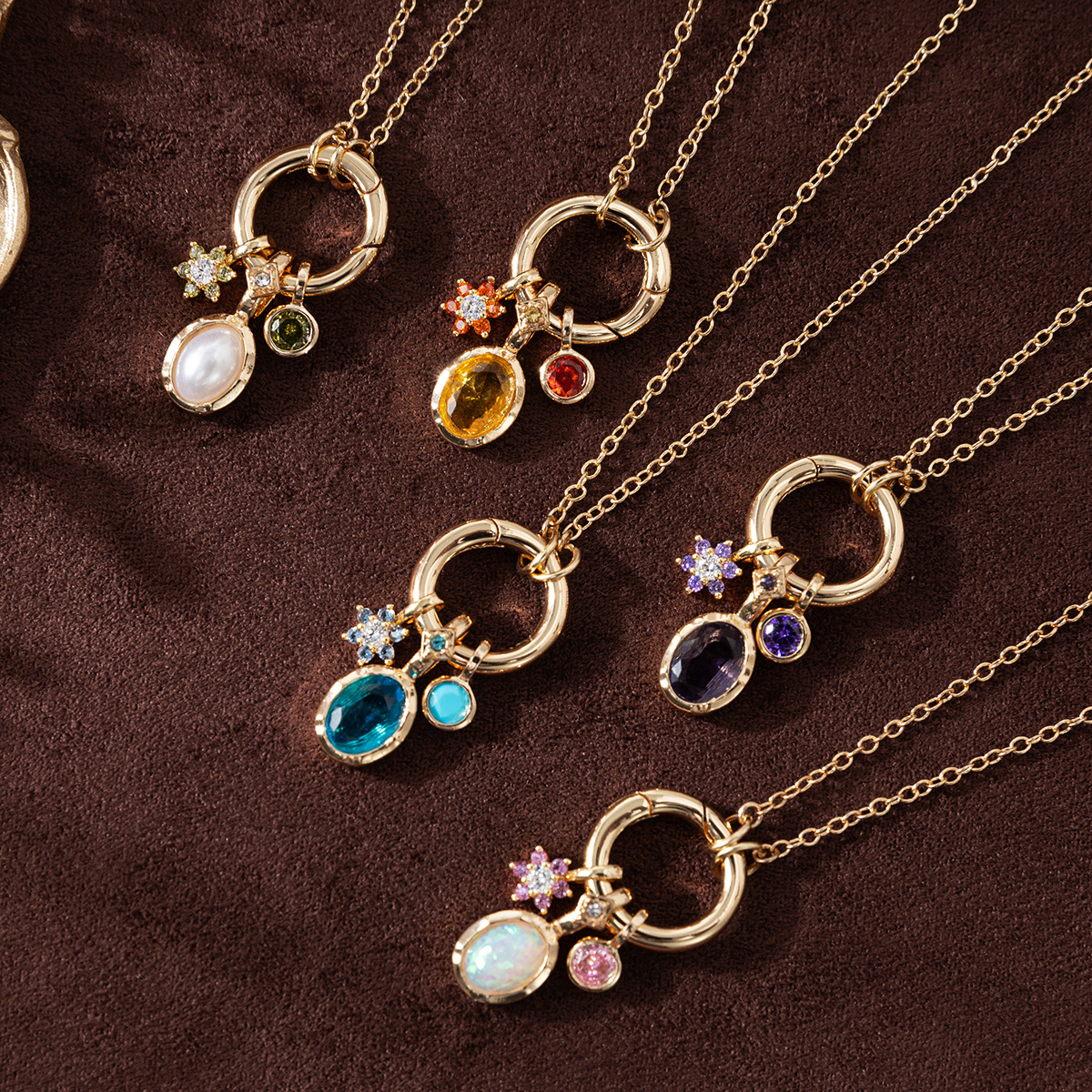 European and American fashion creative colorful birthstone pendant necklace 18k gold-plated color retention