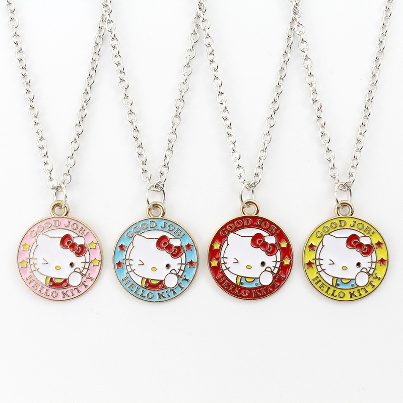 Cross-border Hot Selling Round Hello Kitty Cartoon Necklace All-match Clavicle Chain Alloy Oil Dropping Girlfriend Small Gift for Female Students