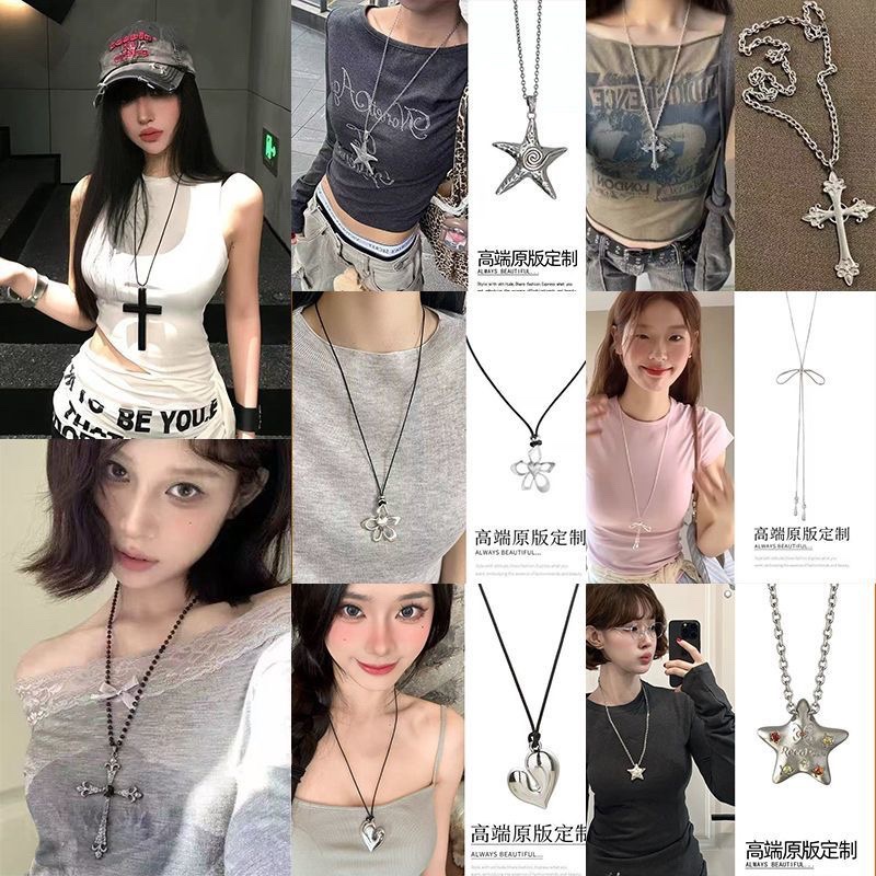 Diamond-Encrusted Glass Beads Beaded Cross Necklace Accessible Luxury High-End Sweater Chain Ins Style Stylish Necklace for Women