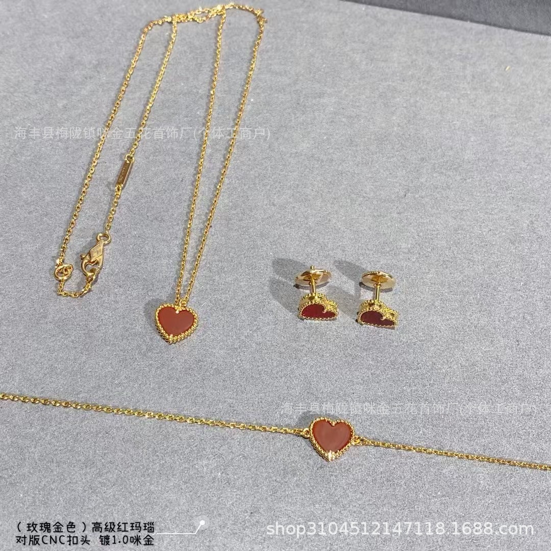 Vajia Red Agate Heart Pendant Necklace Female Internet Celebrity Niche Versatile High-End Small Red Heart Clavicle Chain Earrings