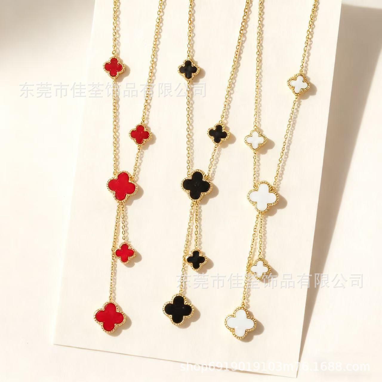 Live Explosions Four-leaf Clover Drop Pendant Necklace Gold-plated Four-leaf Clover Drop Transfer Bead Necklace Advanced Accessories