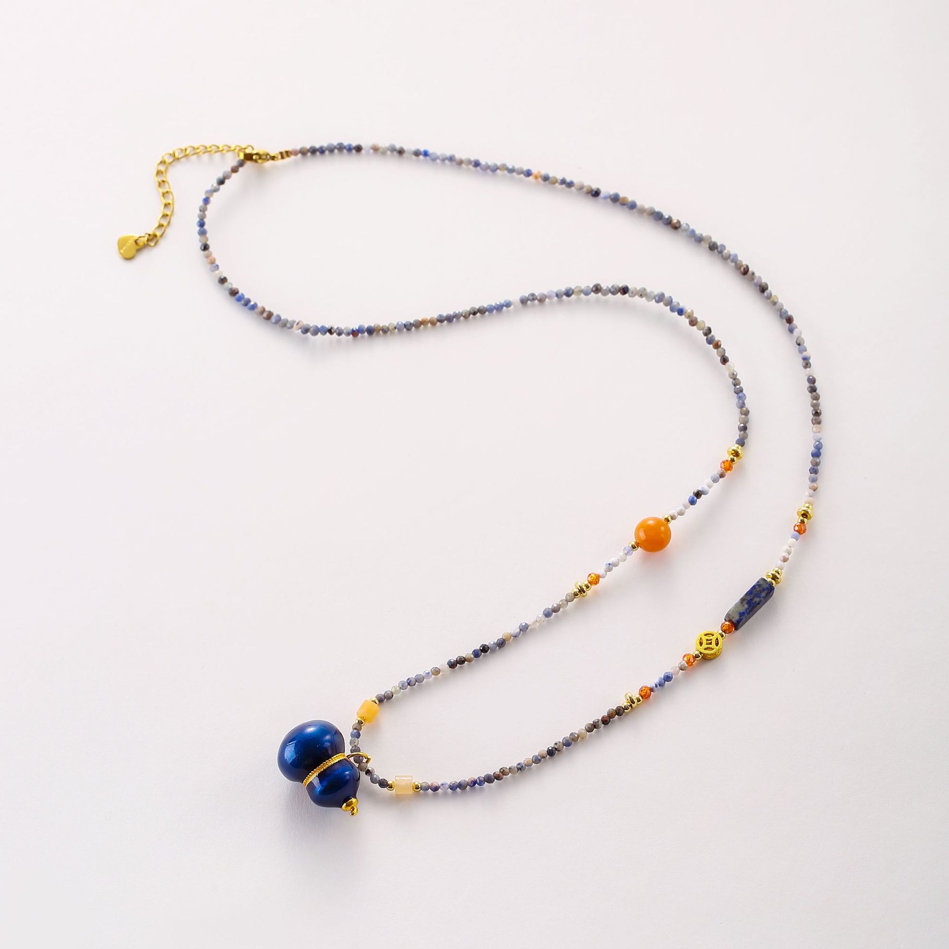 New Product Recommendation: Niche Accessible Luxury Style Natural Blue Stone Lapis Lazuli Red Agate Blue Pine Necklace Clavicle Chain Sweater Necklace