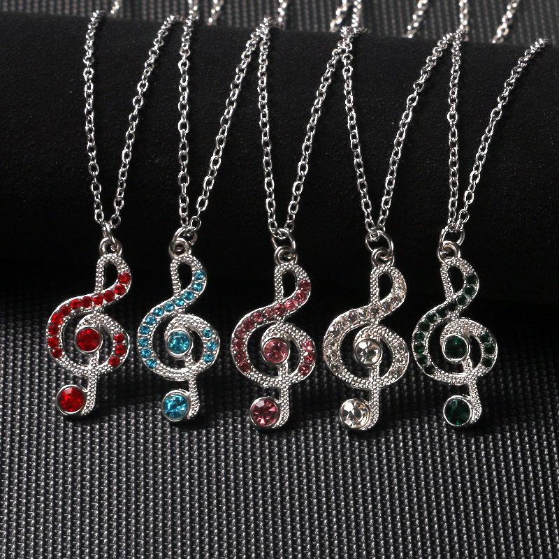 Vintage Silver Diamond Note Necklace Girls Rhinestone Note Casual Easiest for Match Gift