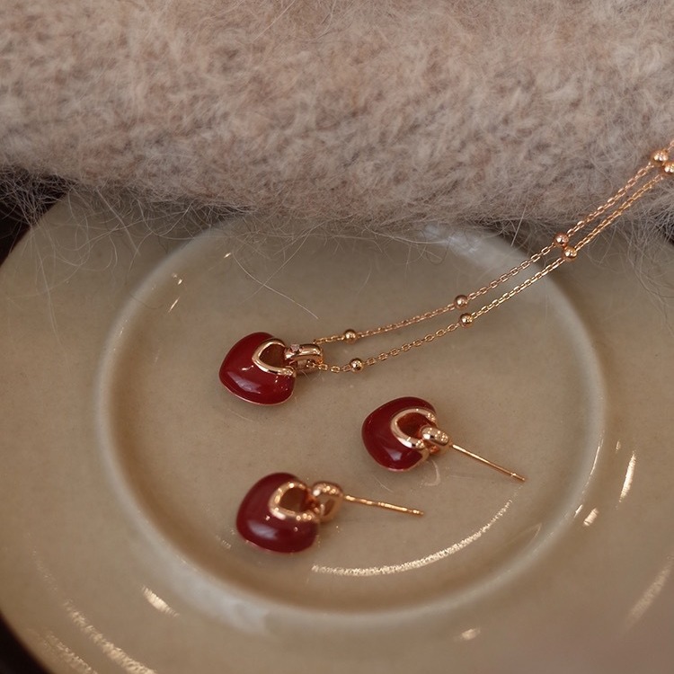 [Autumn and Winter new] red enamel love necklace retro autumn and winter sweater chain French high-grade temperament clavicle chain