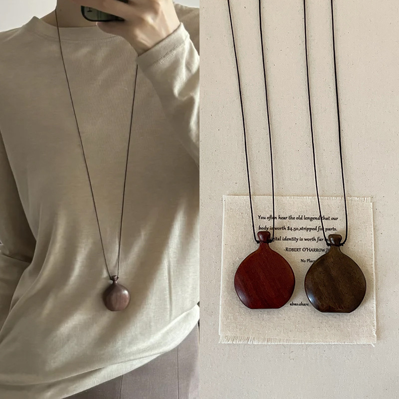 New Chinese Style Vintage Wooden Hags Black Rope Long Necklace Women's Unique Personality All-match Necklace Woolen Chain