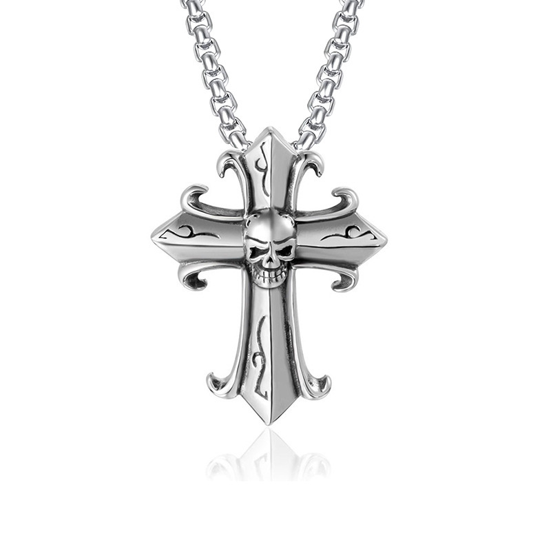2024 foreign trade jewelry wholesale vintage European and American Cross titanium steel stainless steel necklace men's domineering hip hop pendant