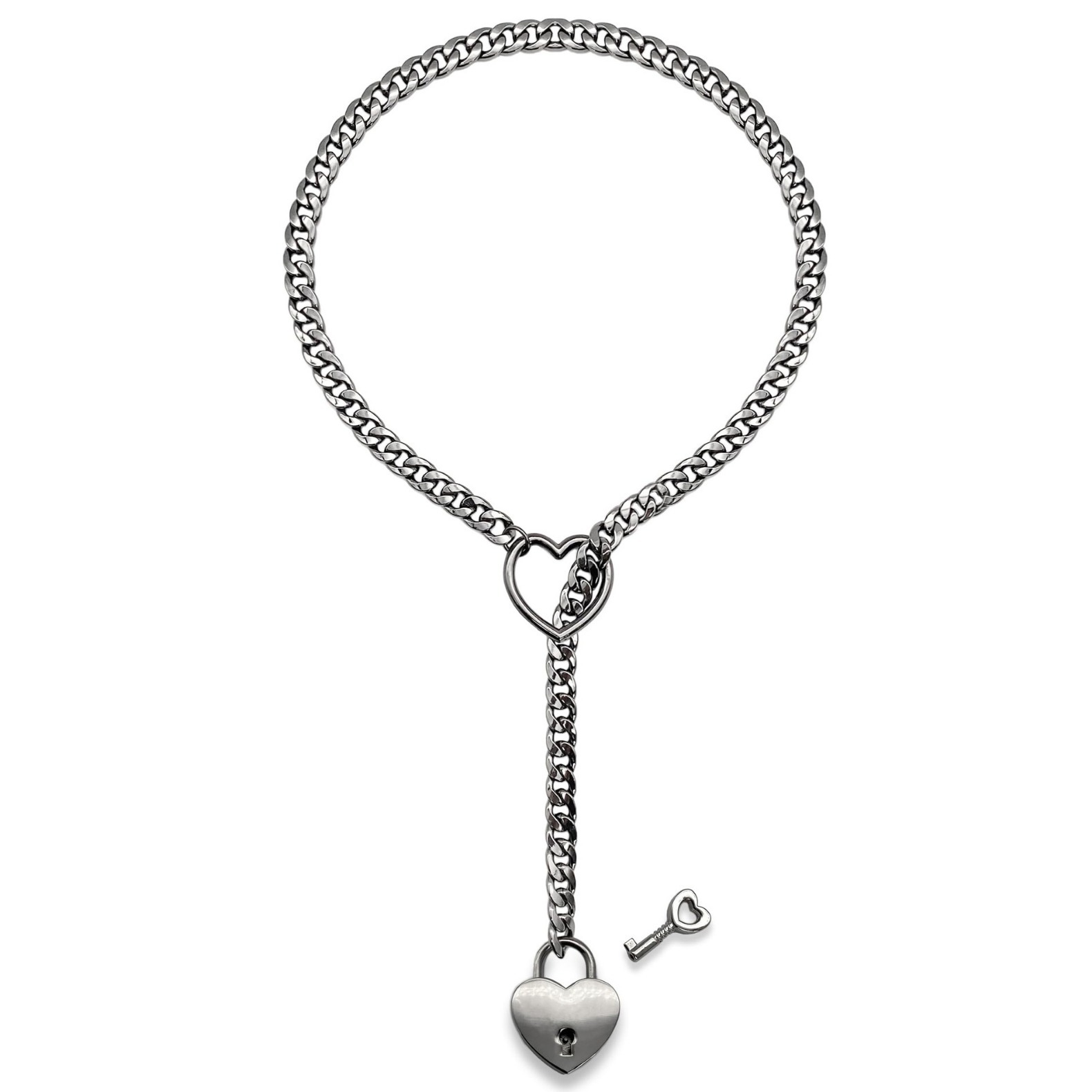 2024 Cross-border Export New Slide Chain Necklace Fashionable Heart-shaped Ring Punk Rock Cuban Long Chain Design for Girls