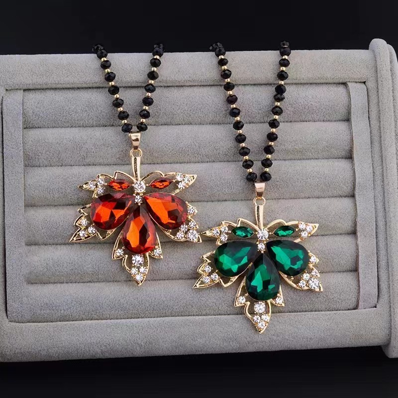 New Maple Leaf Necklace, High-end Crystal Sweater Chain, Autumn and Winter Fashionable Long Pendant, Clothing Accessories
