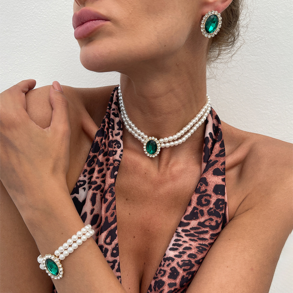 3-Piece Set of European and American Retro Imitation Pearl Diamond Oval Multi-Layer Necklace Accessible Luxury Niche Elegant High-End Necklace for Women