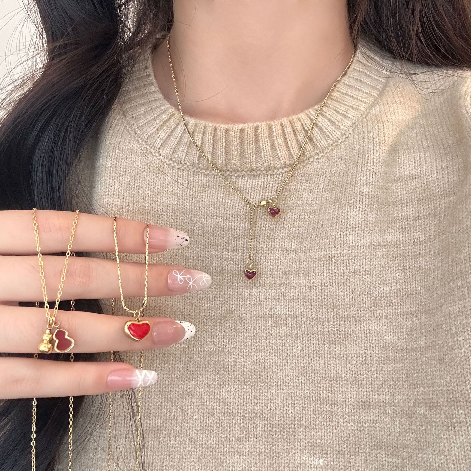 Red Heart-Shaped Gourd Tassel Necklace for Women, Niche Light Luxury Fashion, Elegant and High-End Titanium Steel Non-Fading Clavicle Chain