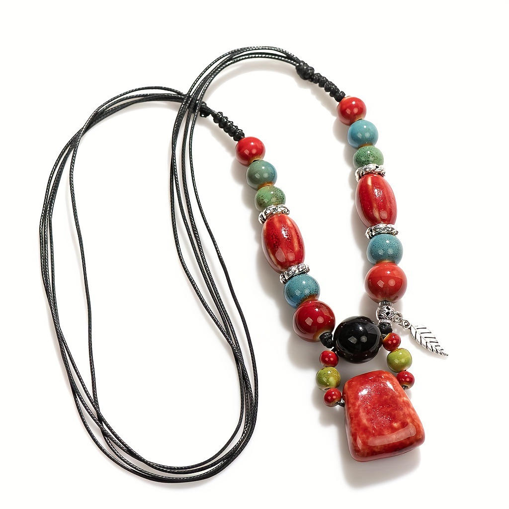 Bohemian long woven ethnic style sweater chain retro versatile handmade gourd ceramic tassel necklace accessories