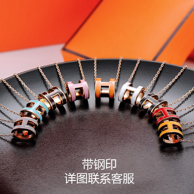 Cnc Process H Letter Necklace Titanium Steel Non-Fading Jewelry Women's Enamel Fashion Versatile Pendant Multi-Layer Design Chain