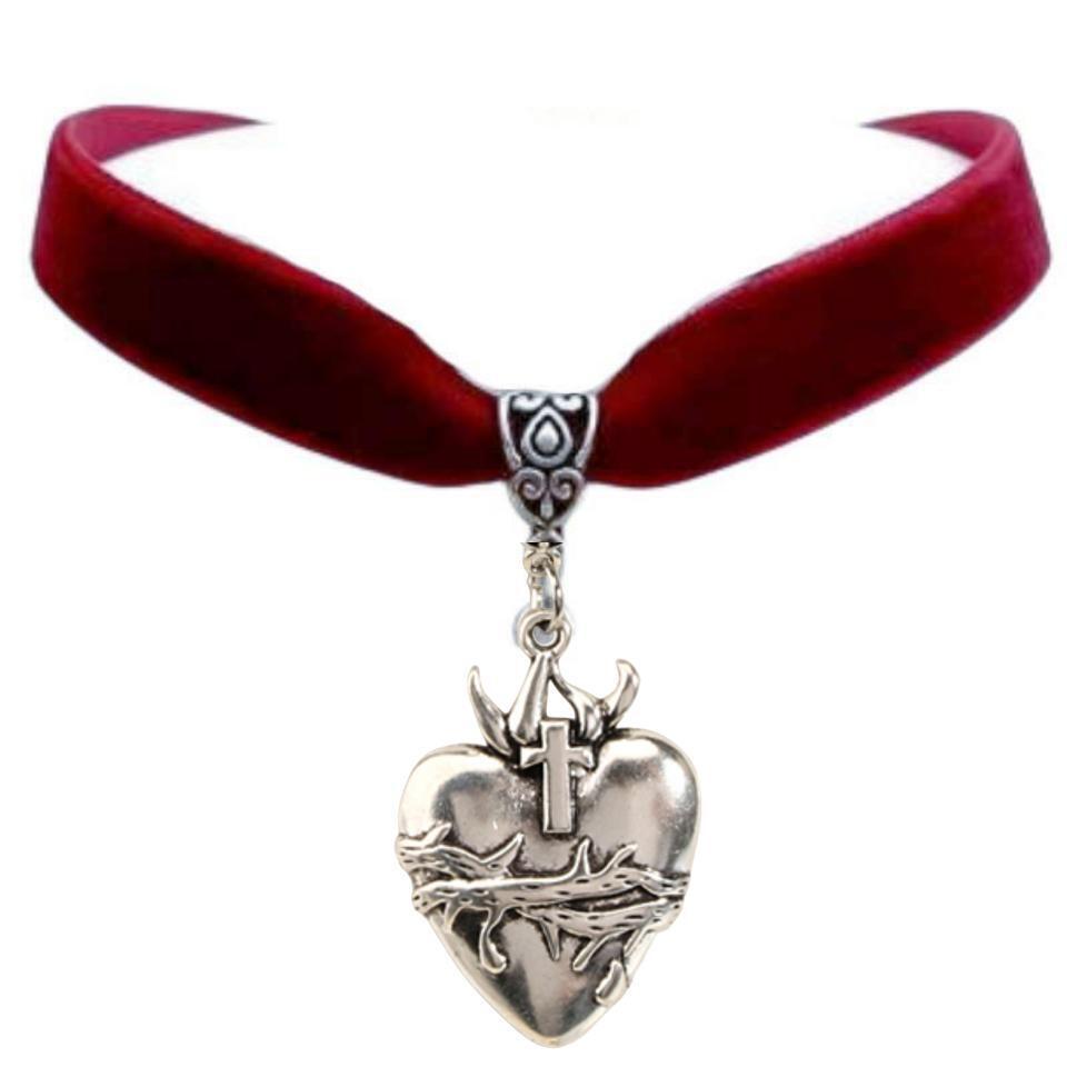 Cross-border Amazon foreign trade black/red neck strap heart gothic dark pendant necklace factory direct sales