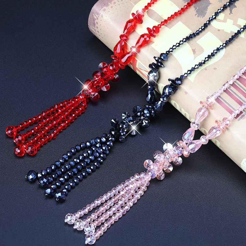 Korean version of the new simple Joker dress long necklace fashion Crystal sweater chain tassel necklace necklace wholesale