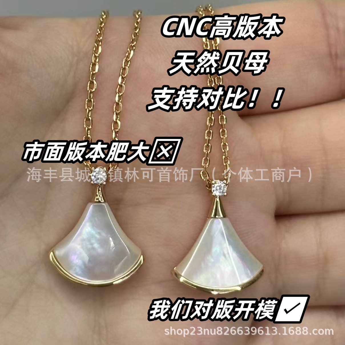 Bv High-End Small Fan Necklace, Finely Crafted Cnc White Shell Mini Skirt Necklace, S925 Silver Plated with 18K Thick Gold