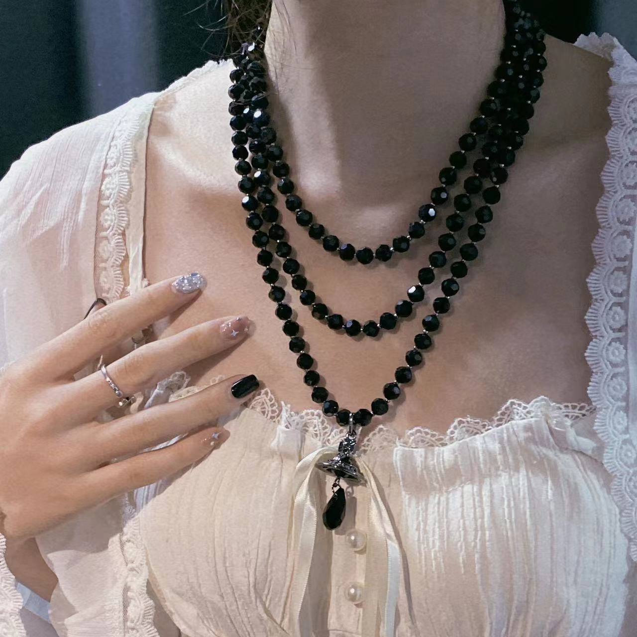 Cross-border explosions multi-layered pearl necklace subculture heavy industry punk hip-hop Y2K clavicle chain necklace wholesale