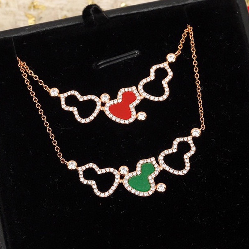 High version new three gourd necklace female v gold rose gold red chalcedony red white fritillary niche clavicle