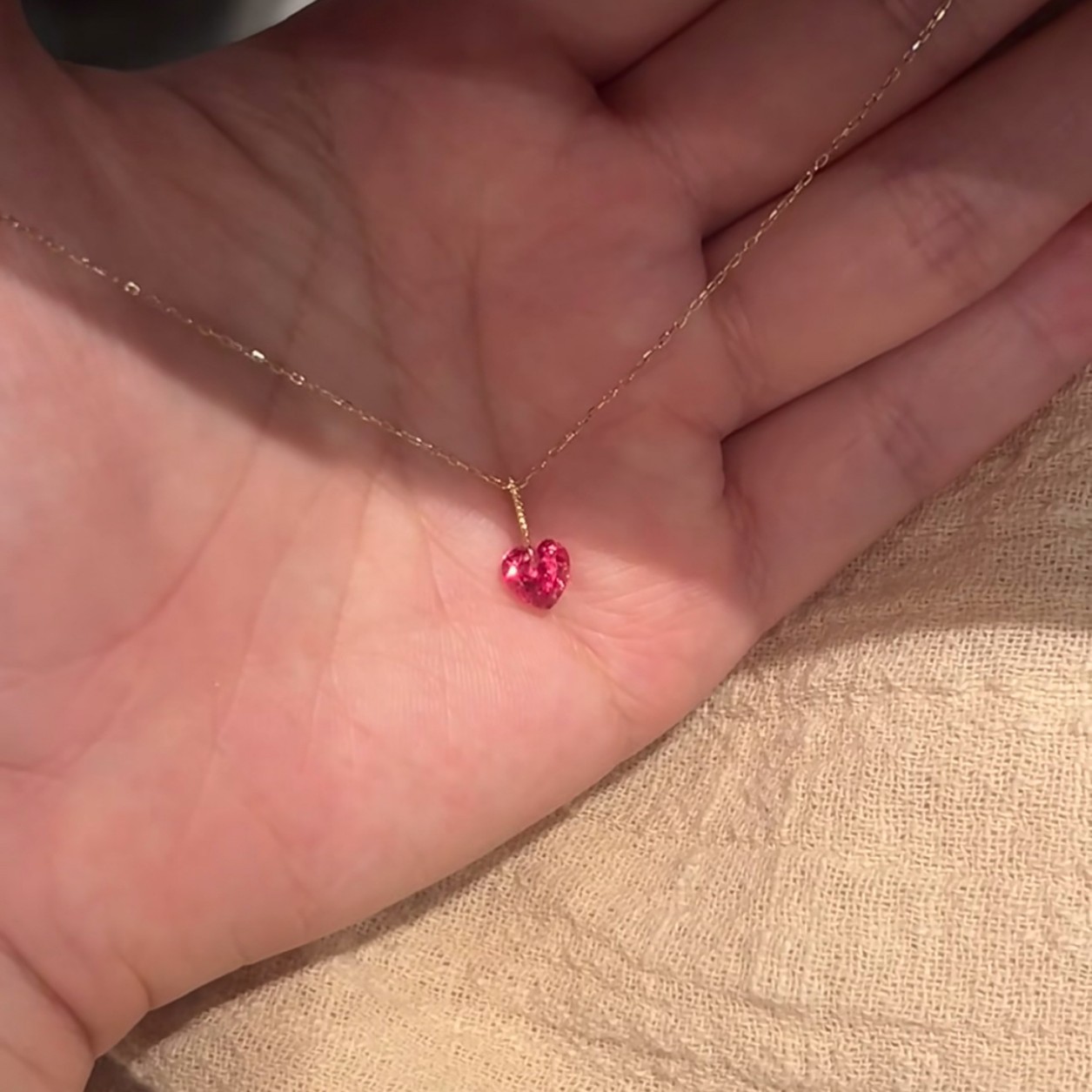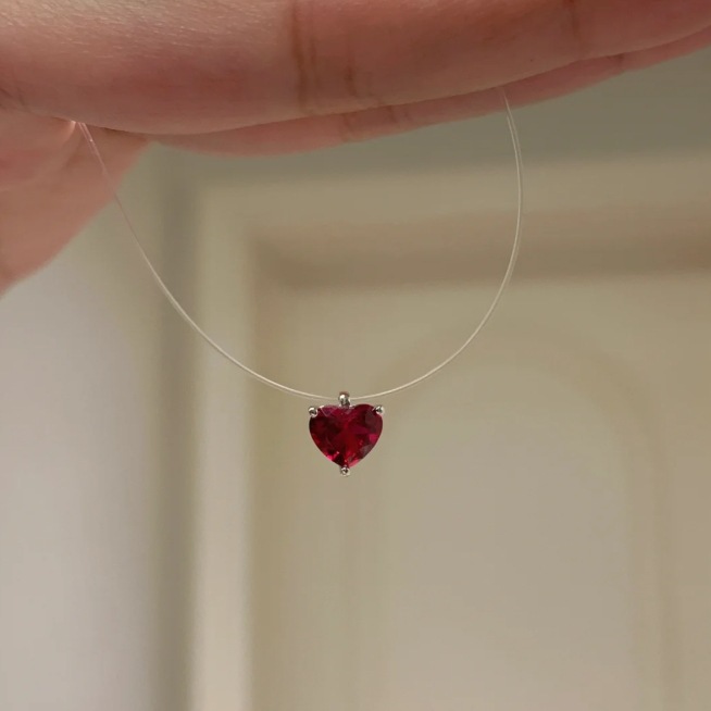 "Cinnabar Mole" Red Heart Casual Pendant Necklace Whitening Invisible Elastic Fishing Line Stacked Clavicle Chain Necklace