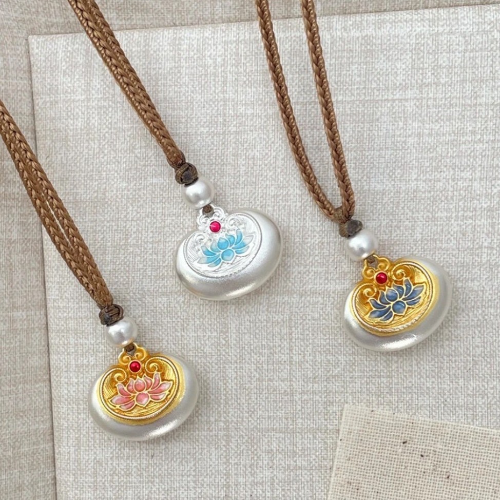 Lotus Bean Enamel Lotus Long Sweater Chain New Chinese Style National Style Necklace Women's Pendant Accessories Women's Jewelry