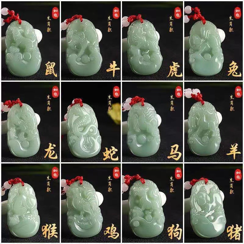 12 Zodiac Imitation Jade Green Necklace, Zodiac Year Transfer Red Rope Necklace, Male and Female Guardian Pendant, Twelve Zodiac Pendants