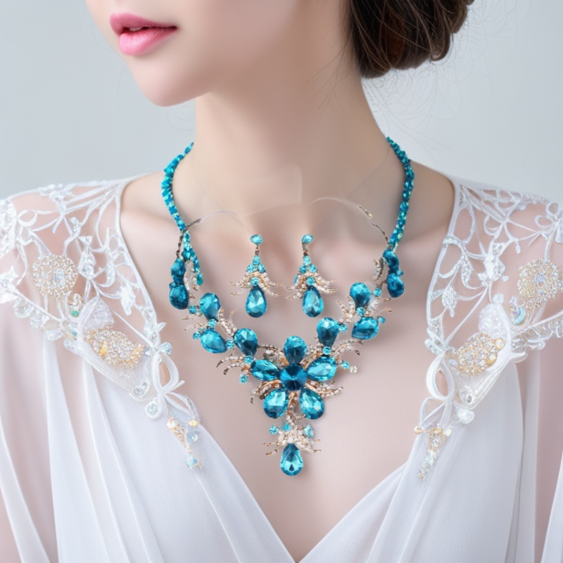 European and American Style Necklace Jewelry Set, Clavicle Crystal Exaggerated Agate Ruby Pendant Chain, Bridal Dress Accessories