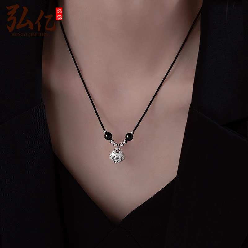 999 Foot Silver Ping An Fu Clavicle Chain Women's Niche Exquisite Long Life Lock Handmade Rope Necklace for Girlfriend's Birthday Gift