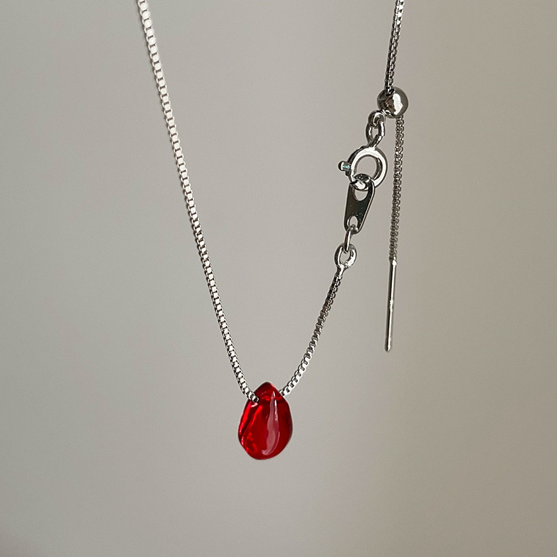 Casual and Versatile Red Water Drop Pull-Out Necklace for Women, Niche High-End Stylish Fashion Trendyy Neck Chain Clavicle Chain