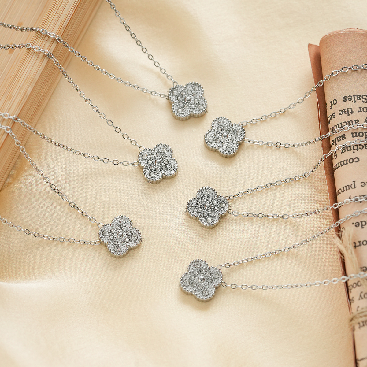 Cross-Border Four-Leaf Clover Necklace, Light Luxury and High-End, Cross-Border Titanium Steel Non-Fading Women's Niche Clover Jewelry with Diamonds
