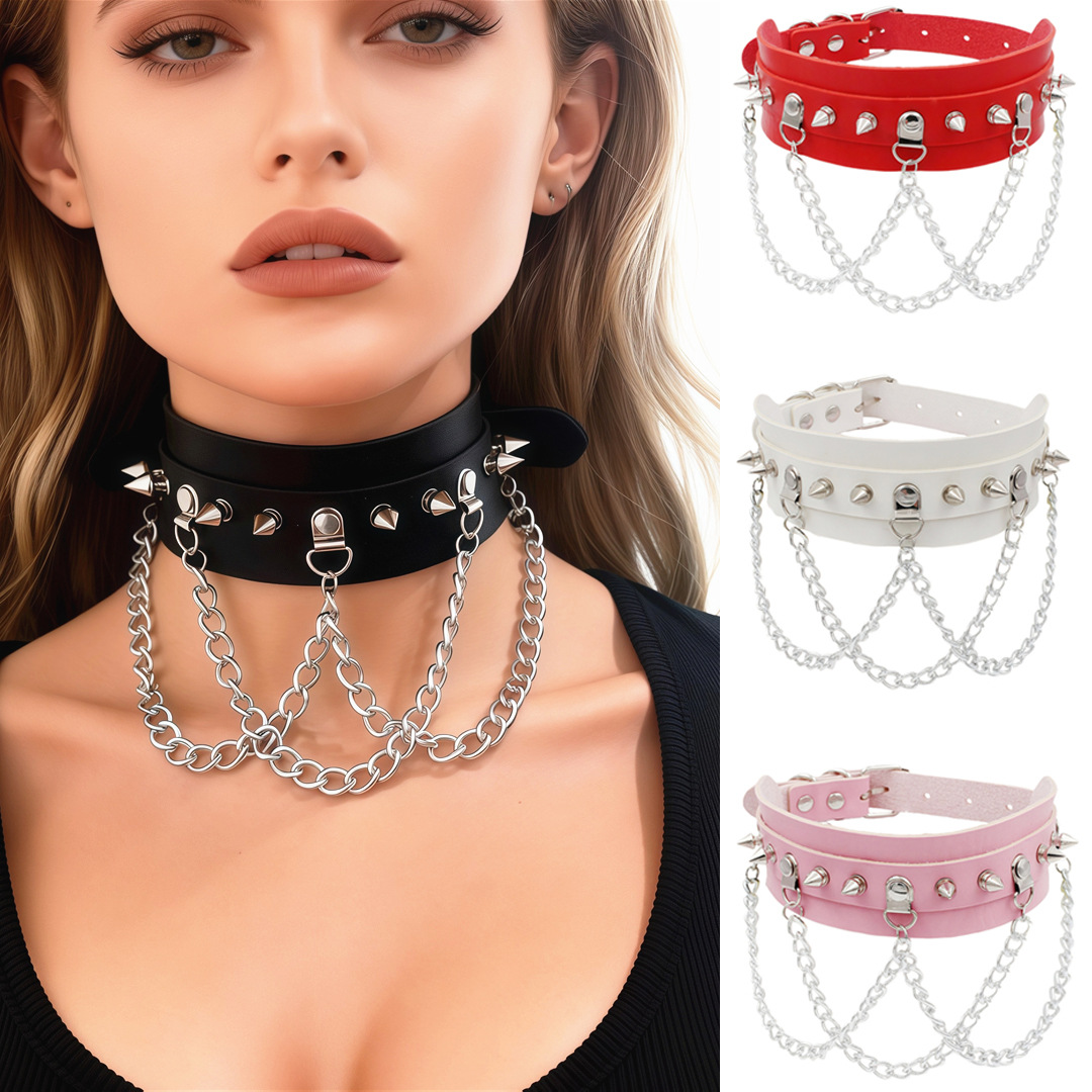 Eco-Friendly Pu Leather European and American Gothic Exaggerated Choker Necklace Punk Street Style Nightclub Metal Chain Neck Strap Clavicle Chain