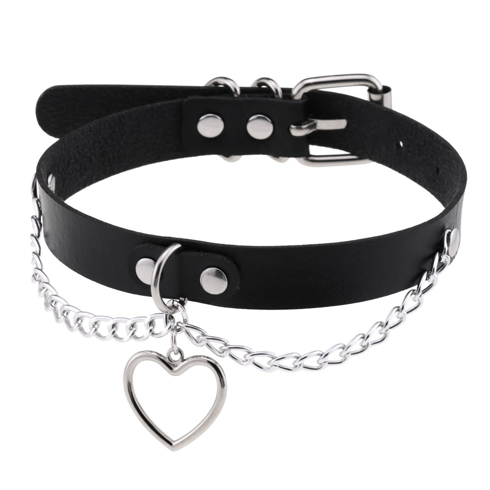 Sexy punk foreign trade fashion temperament love heart clavicle neck chain street rock chain bondage collar necklace