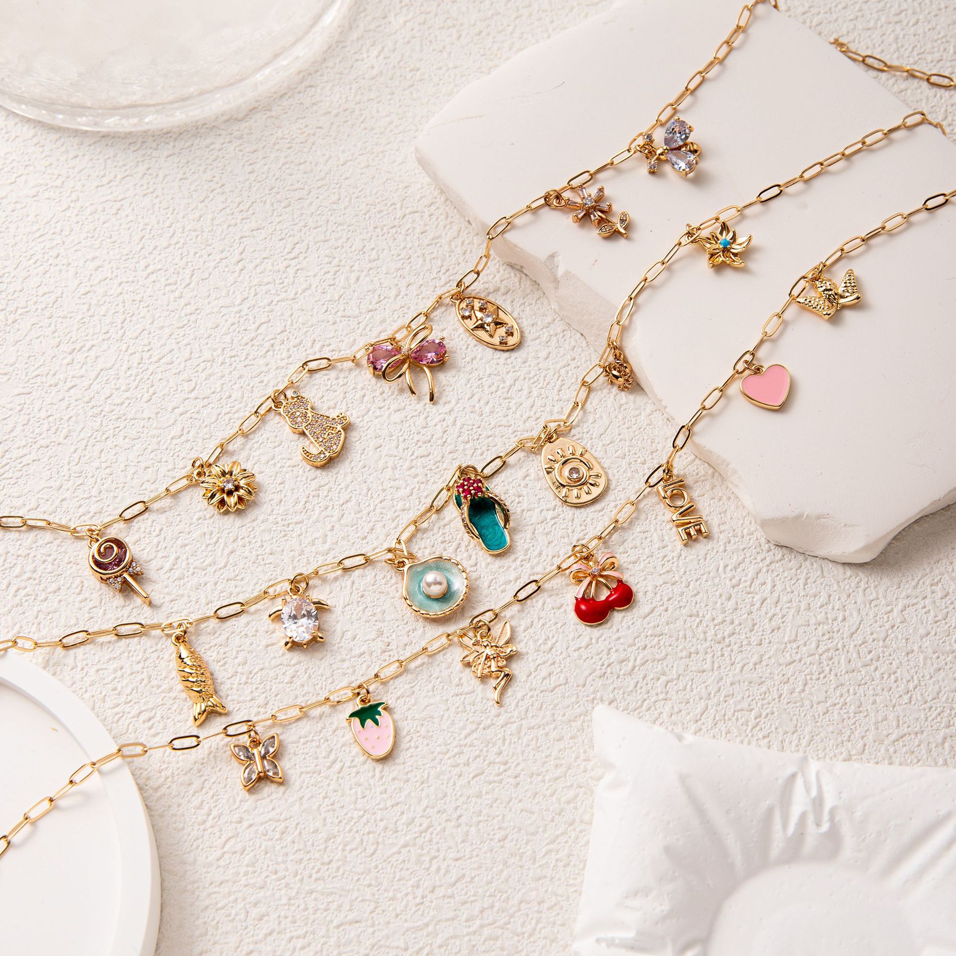 Summer Vacation Multi-Pendant Necklace Butterfly Tropical Fish Heart Cherry Ocean Style Vacation Beach Jewelry Necklace for Women
