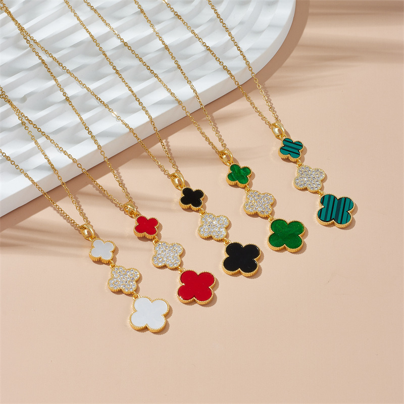 2023 tremolo zircon four-leaf clover pendant simple fashion niche flower titanium steel necklace women jewelry jewelry wholesale