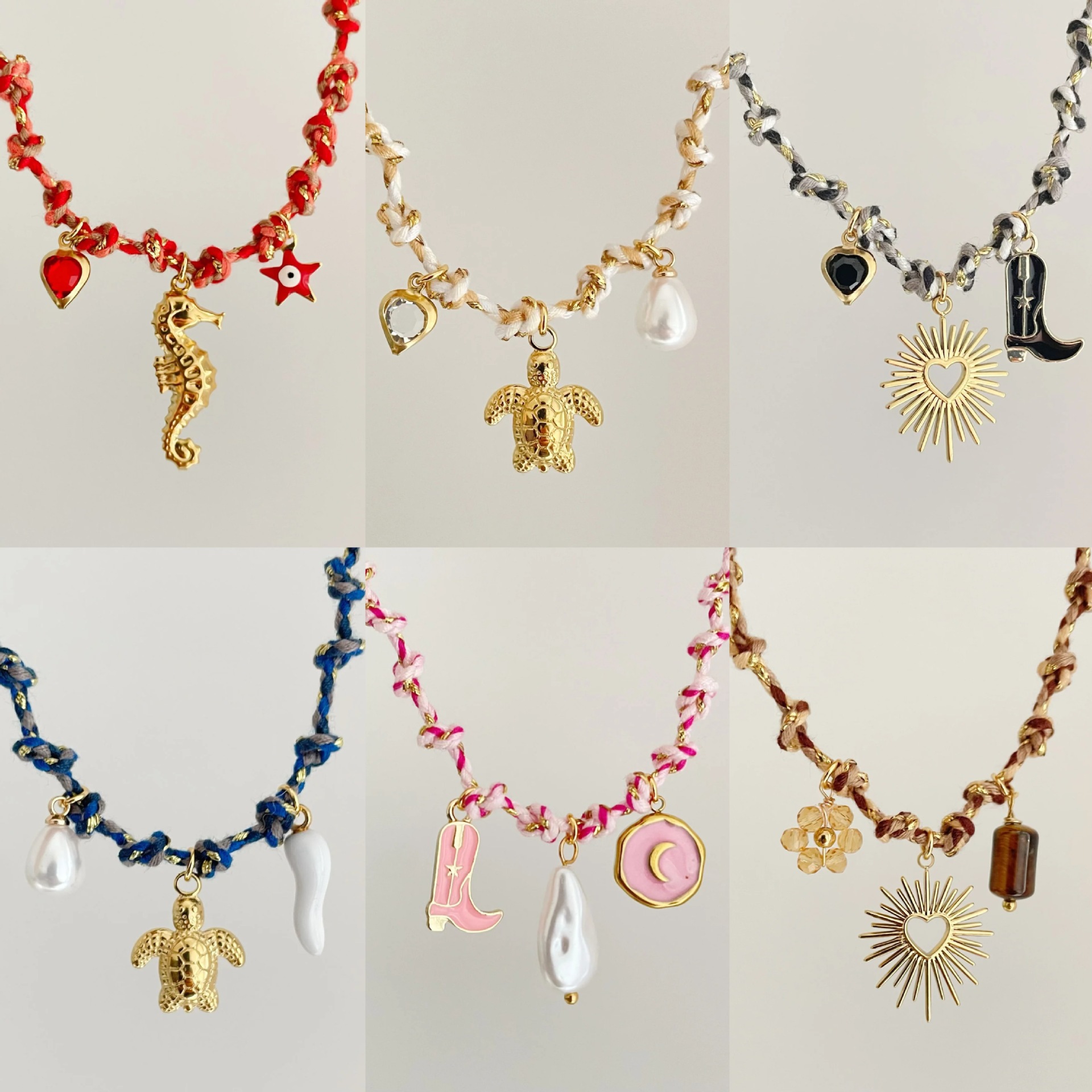 Cross-Border Original Design Dopamine Color Rope Necklace with Ocean Series Pendant Colorful Fashion Personalized Hand Jewelry Copper