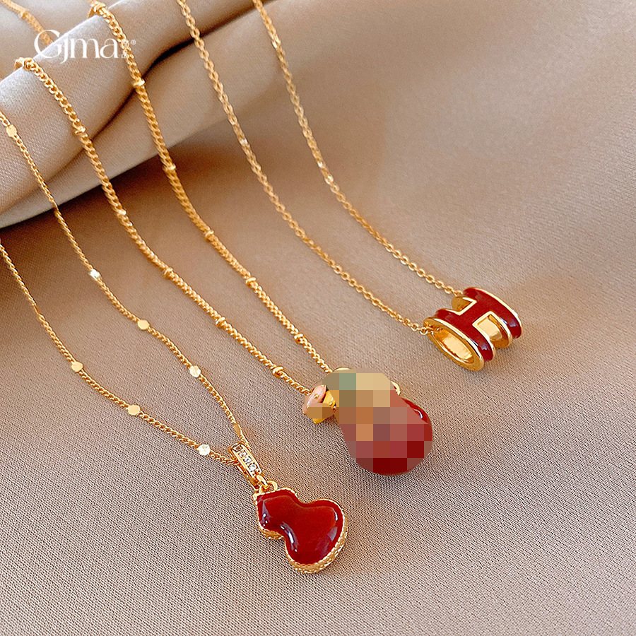 18K Real Gold Electroplated Red Enamel Letter Gourd Pendant Necklace Accessory Women's Sweater Chain New Chinese Style Necklace for Women