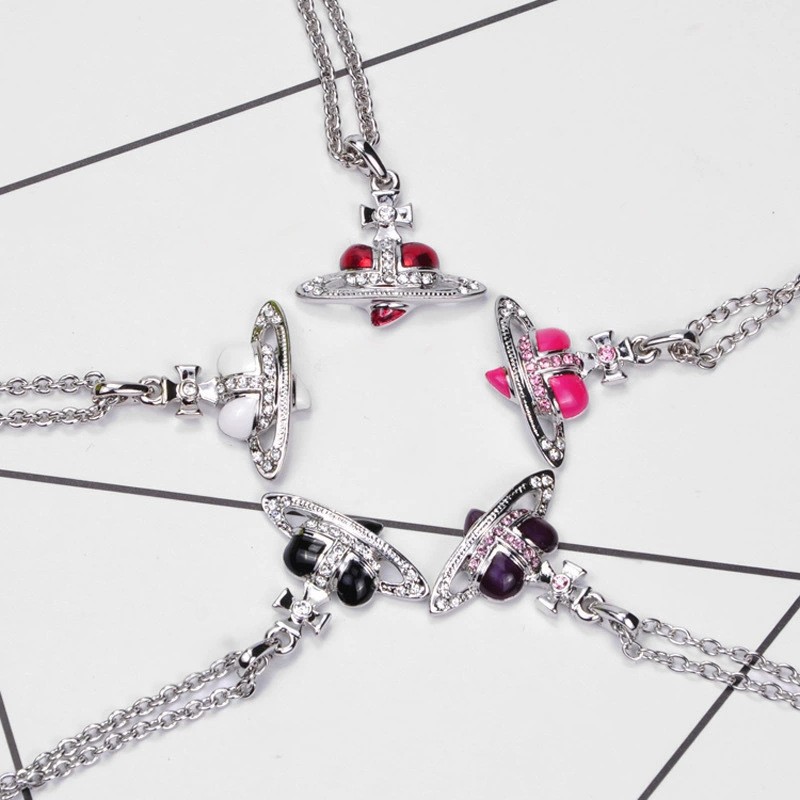 Xijia Big Love Enamel Painted Diamond Saturn Necklace Ins Hip-Hop Punk Clavicle Chain Sweater Chain for Women
