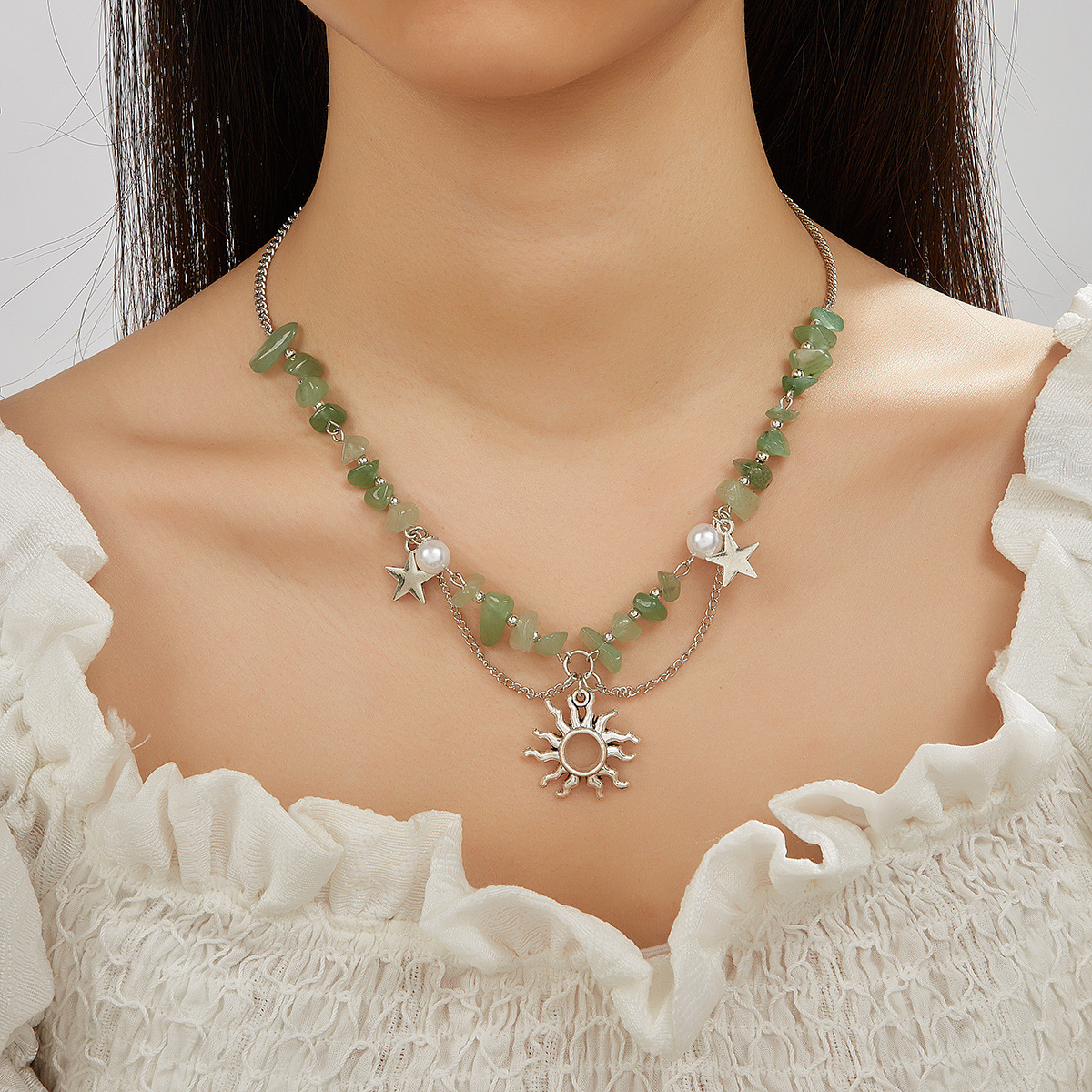 European and American Cross-border Niche Design Beaded Tassel Sun Star Necklace Colorful Irregular Gravel Collarbone Necklace