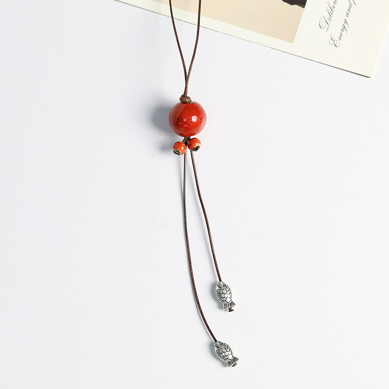 Koi sweater chain Jingdezhen ceramic necklace long antique cheongsam Chinese clothing accessories pendant manufacturers supply wholesale