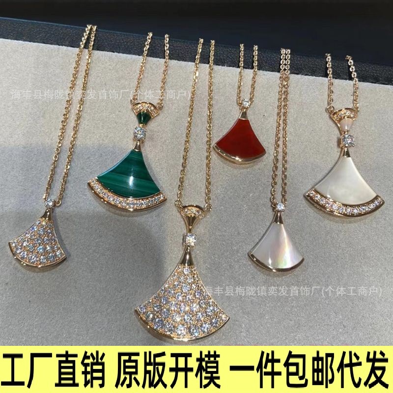 Baohome Small Skirt Necklace for Women V-Shaped Gold and White Mother-Of-Pearl Fan-Shaped Pendant Sweet and Cute Full Diamond Clavicle Chain Factory Direct Sale