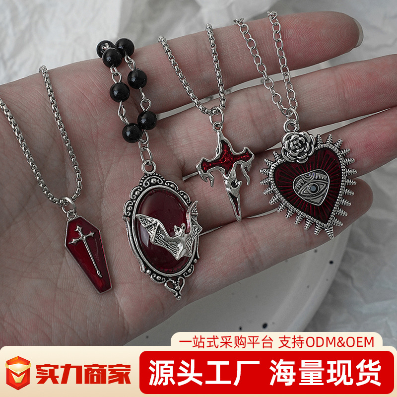 European and American Cross-Border Jewelry New Cross Tombstone Necklace Personalized Retro Religious Simple Niche Pendant Clavicle Chain