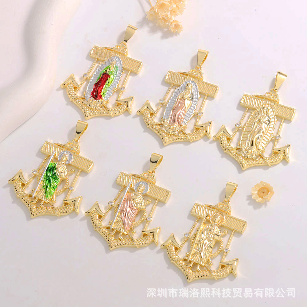 Cross-Border Trade Anchor Religious Virgin Mary Saint Jude Staff Saint Father Color-Separated Pendant Necklace Literary Retro